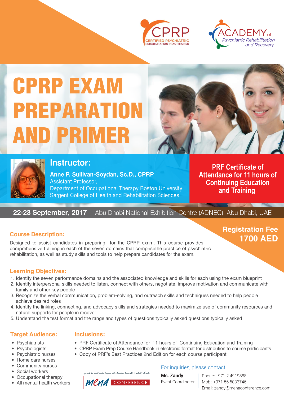 REGISTER here (choose CPRP in the drop down menu AED 1700)